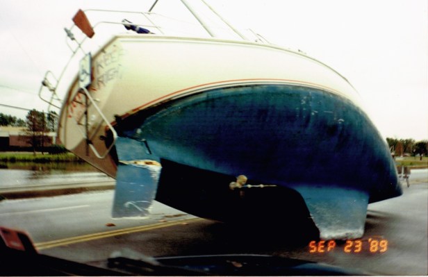 After work, my husband (now ex) decided to drop off the boat to store at their house in case Hugo hit. They live about 80 miles inland. The boat would never have made it though the storm if we had kept it in our back yard. He was planning to get up early and head back home on Wednesday.