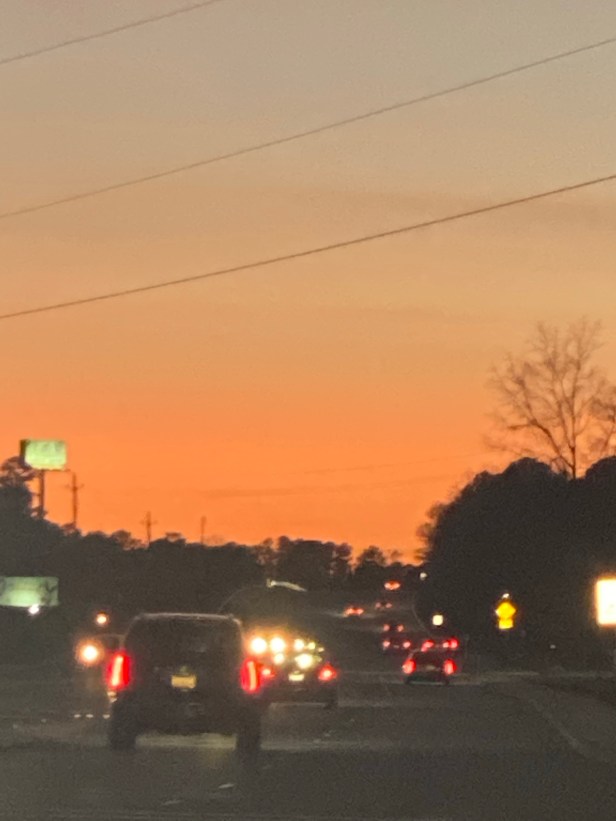 Now that the service was over, we have time to reflect back. I was able to capture a little Christmas Spirit despite the obstacles. We were able to enjoy the service with my sweet daughter in law and her sister. We got to hear a solo of Christmas Tide/ Jesse’s Carol and we were heading home, we noticed some of God’s amazing sunsets.