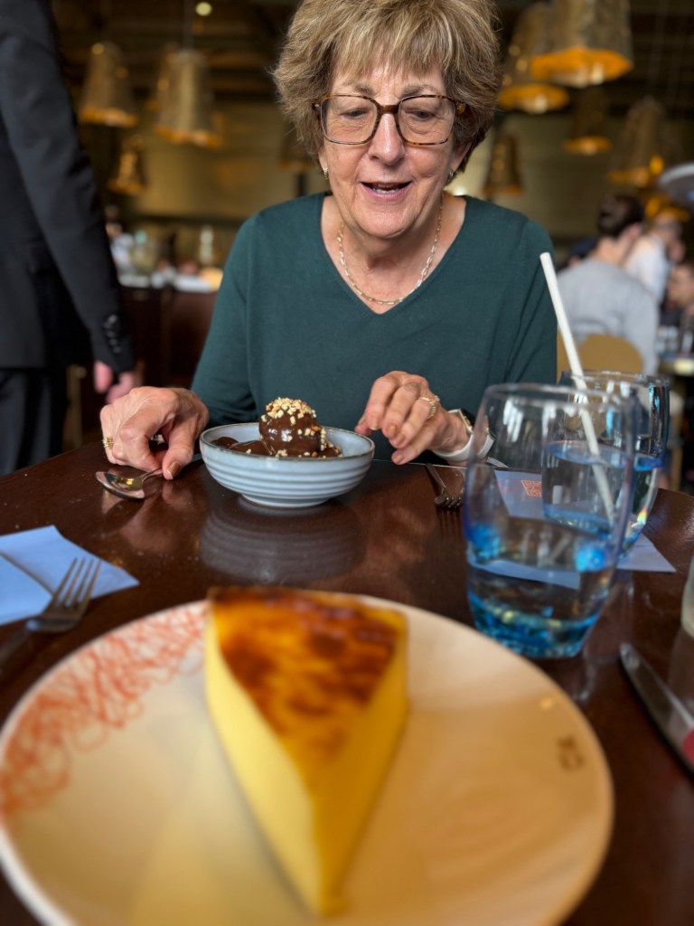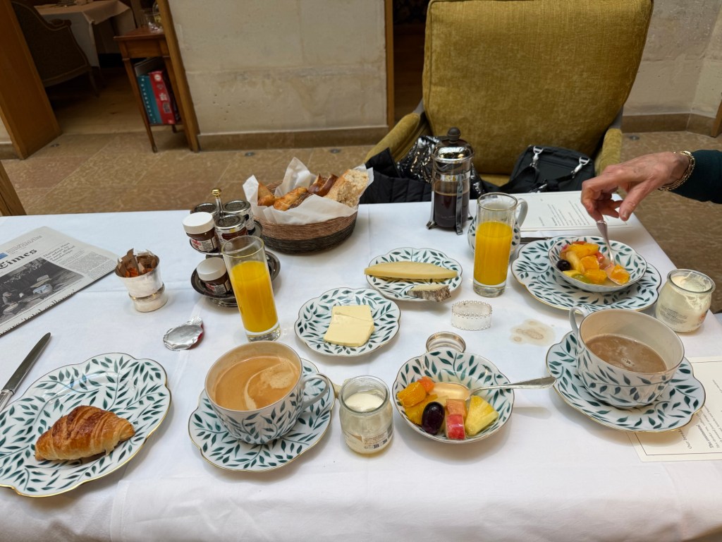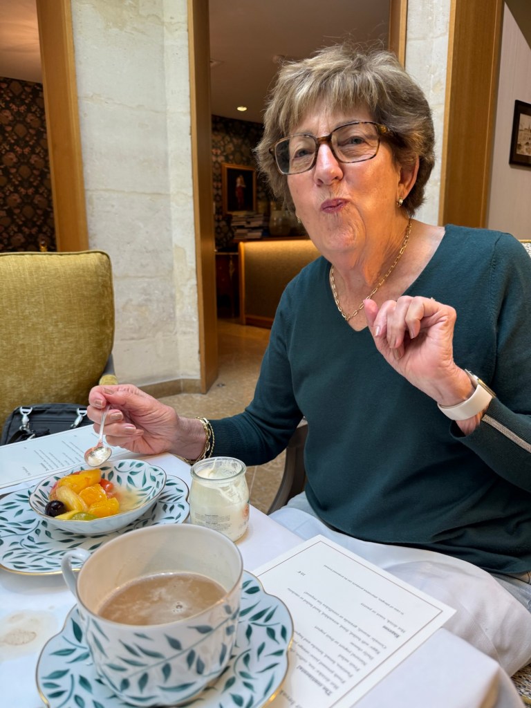 We started the day with breakfast at the hotel—fresh fruit, yogurt, pastries, and warm bread. We fumbled through our coffee order (par for the trip) and ended up with a coffee latte for me and a “normal coffee with milk” for Mom. Classic. We realized we were running late and, like true Americans, rushed through breakfast—vowing to allow more time the rest of the trip—