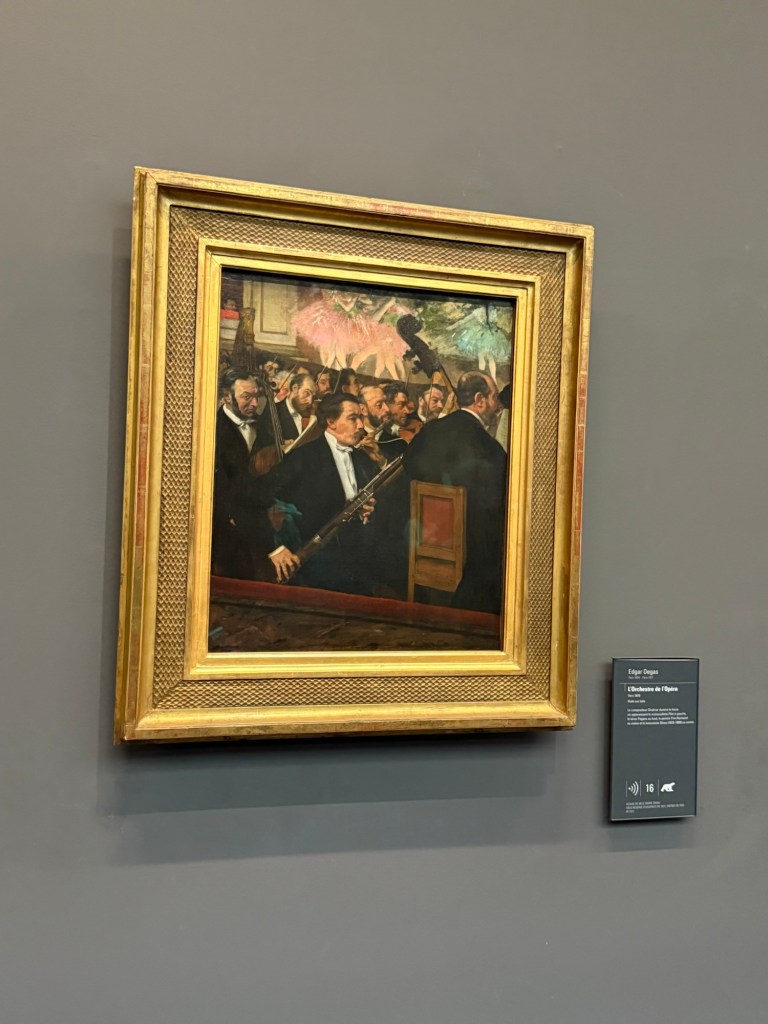I love how Degas flips the perspective here—from the pit of the orchestra pit, it’s loud, cramped, and totally alive. You even see a glimpse of dancers at the top.