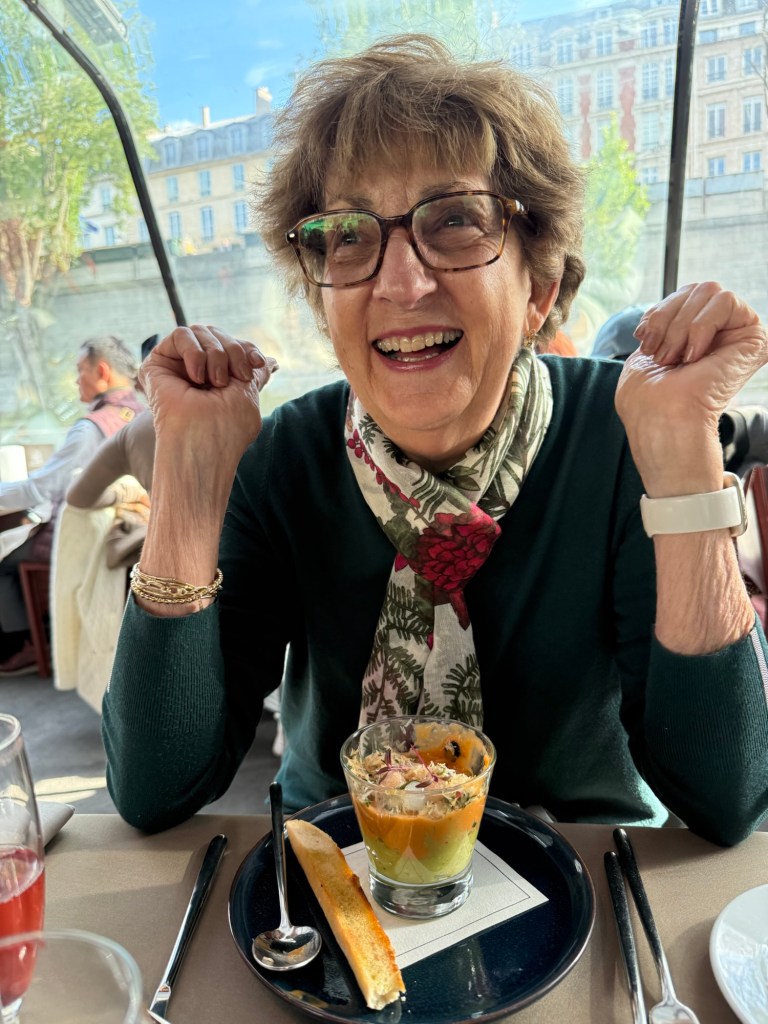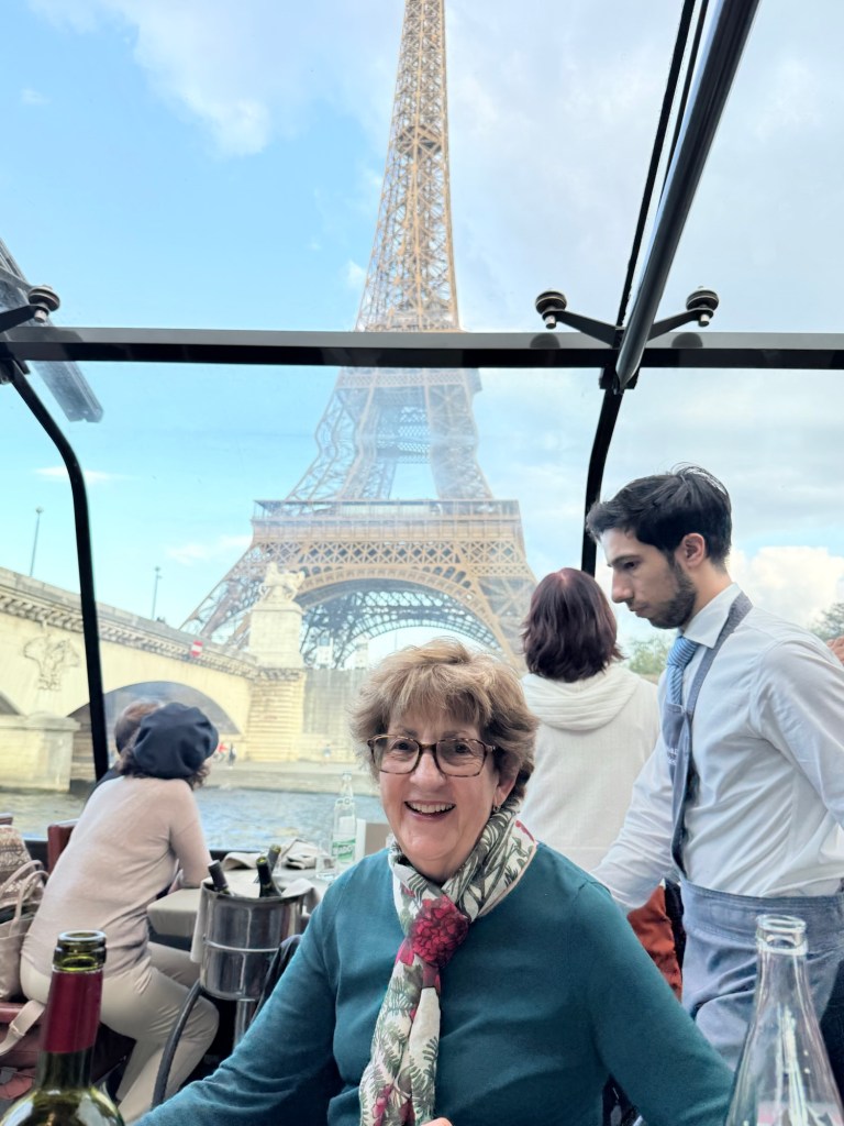 That night, we scrambled to make it to our Seine River dinner cruise—and it was fabulous. We had a fantastic waiter, a delicious multi-course dinner, and gorgeous views as we floated past the Eiffel Tower, Notre-Dame, the Louvre, and more—all beautifully lit under the Paris night sky.