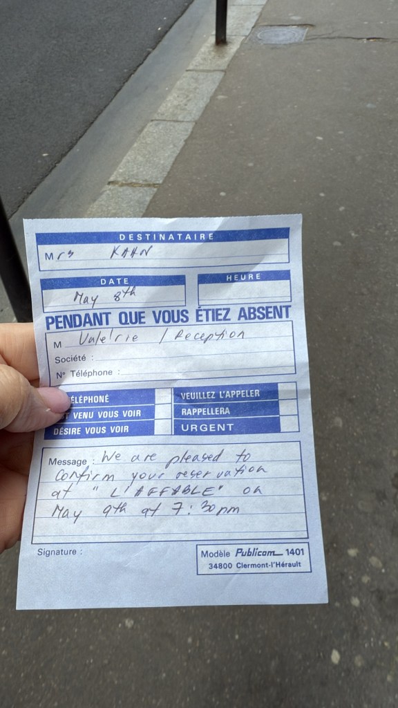 Look at how formal her note is to us! I messaged Naman again, asking if he could push the tour to 7:30 or move to Saturday night, so regardless we could enjoy early dinner and still see the Eiffel Tower sparkle at 10:00.