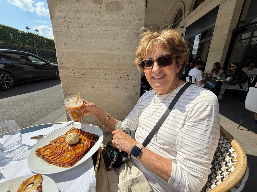 We stopped at Café La Mairie and sat outside, people-watching at a sunny sidewalk table. We both ordered omelets, trying to fill up—knowing it could be nine hours until dinner. Our Paris by Night tour was scheduled for 6:00, and we weren’t sure if we’d have time to eat later.