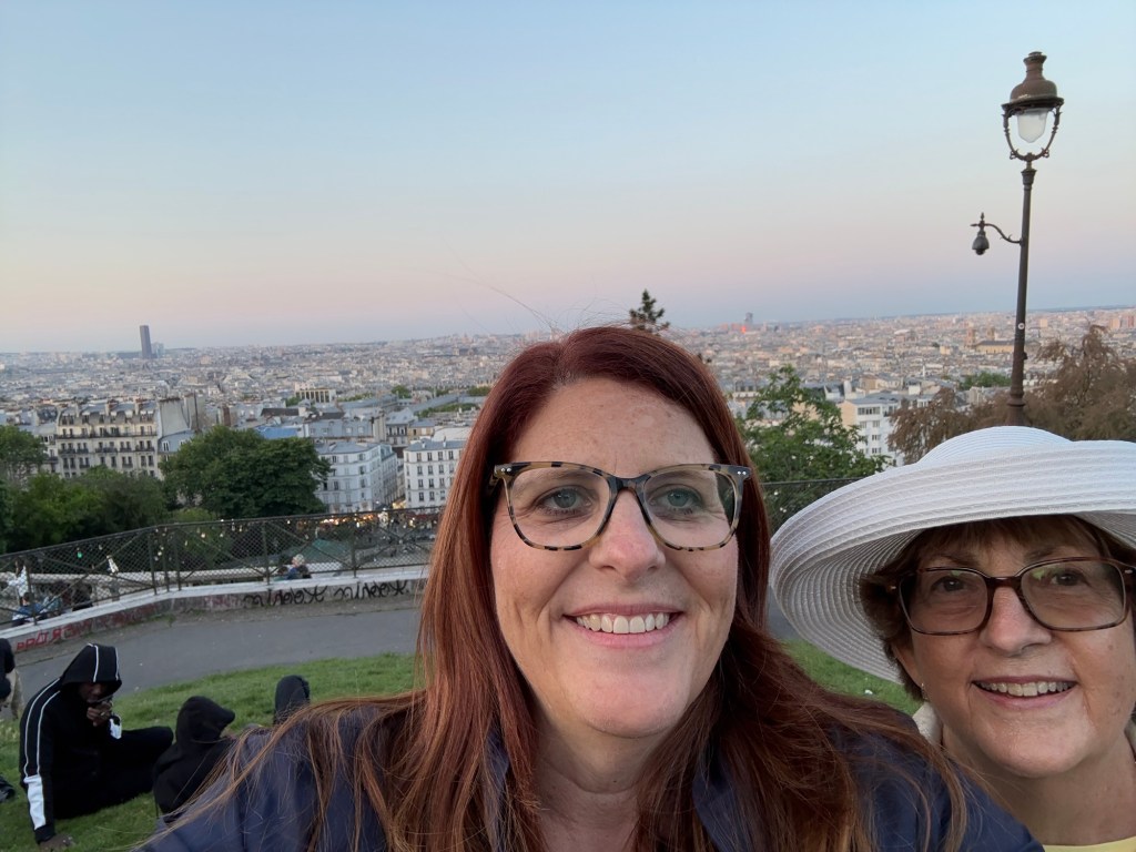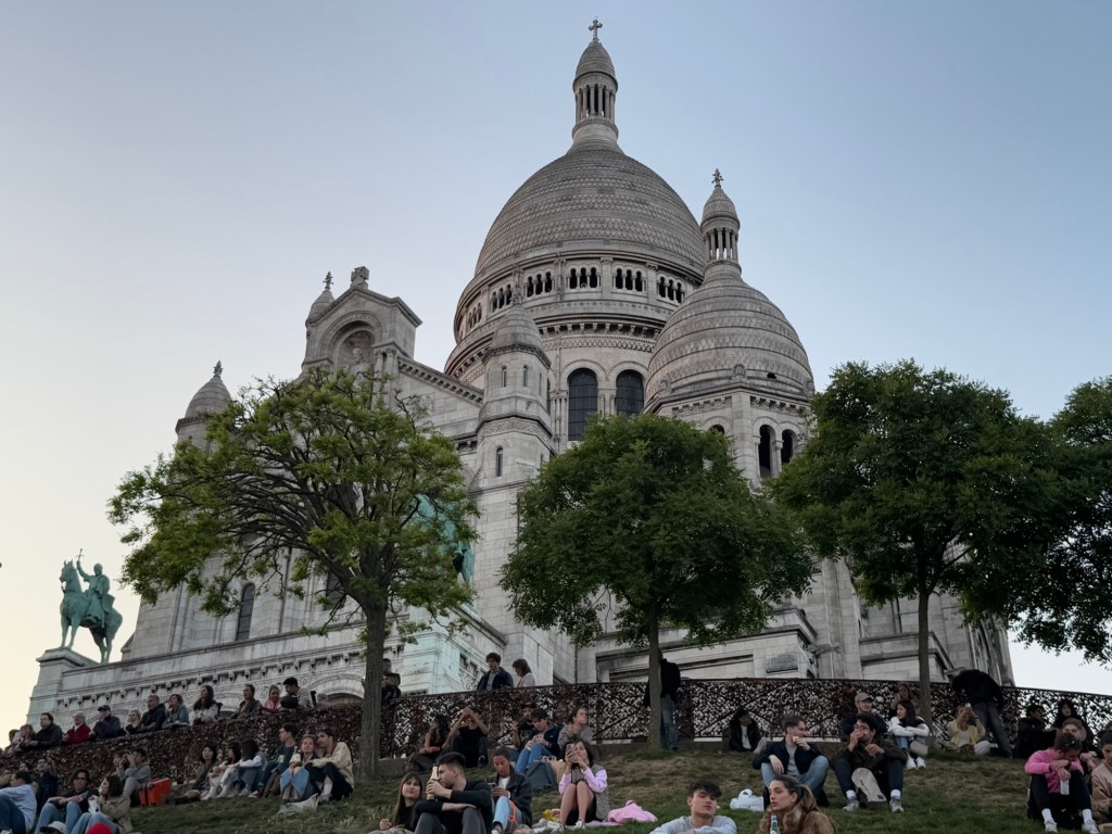 - We hopped out at Sacré-Cœur, glowing in the evening light