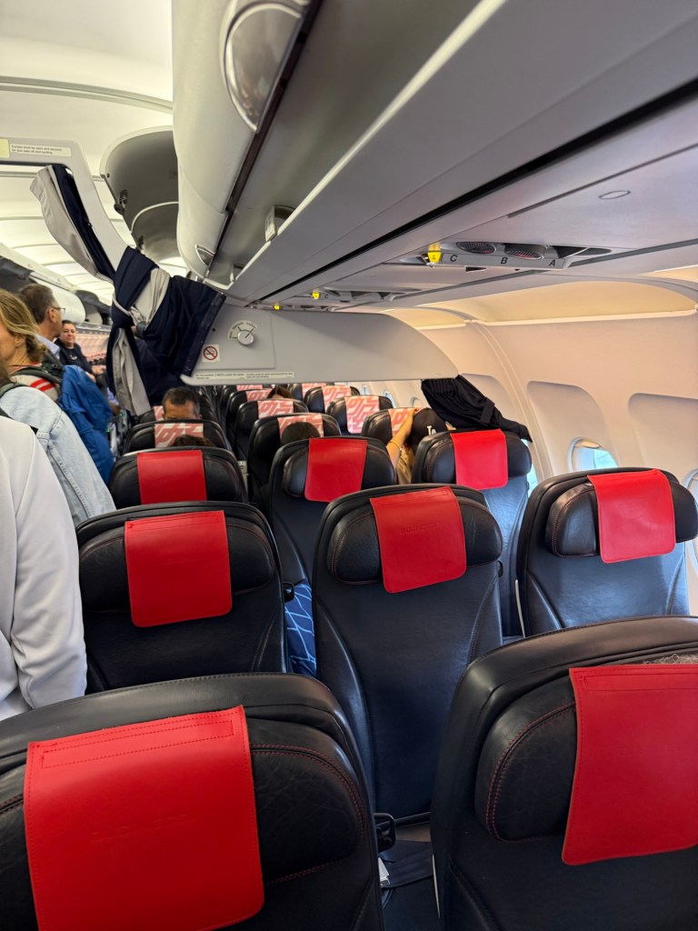 Now it’s time to board the plane and I upgrade to first class! Same seats just no one in the middle seat.