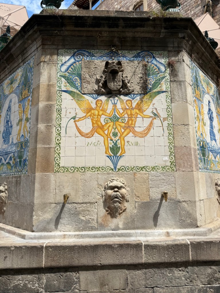 Font de Sant Just is one of Barcelona’s oldest fountains. Built in the 14th century and rebuilt in the 1500s, it once served locals with fresh water. The colorful tiles and lion-head spouts were added later, blending medieval function with artistic flair.