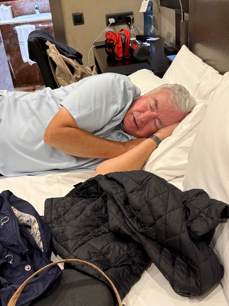 Tim has always coached us on how to handle jet lag: power through, stay busy, and absolutely NO NAPS. I never follow this rule—and neither does my mom—but he truly believes it’s the way to go.