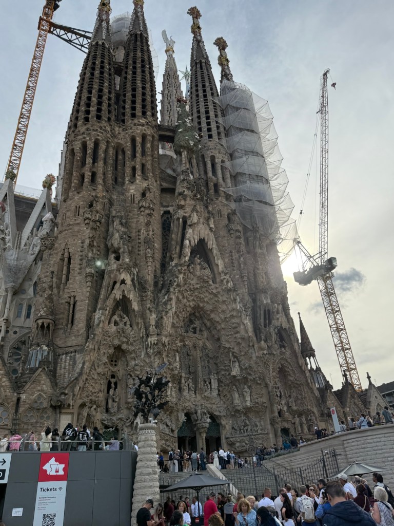 Then the tour guide shared the tragic story of Gaudí’s death—hit by a tram just blocks from the Sagrada Família and mistaken for a beggar because of his humble appearance. He was taken to a charity hospital and given poor care. By the time they realized he was a wealthy, respected architect, it was too late. Now we’re heading by metro to the Sagrada Família, the masterpiece he devoted his final years to but never saw completed.