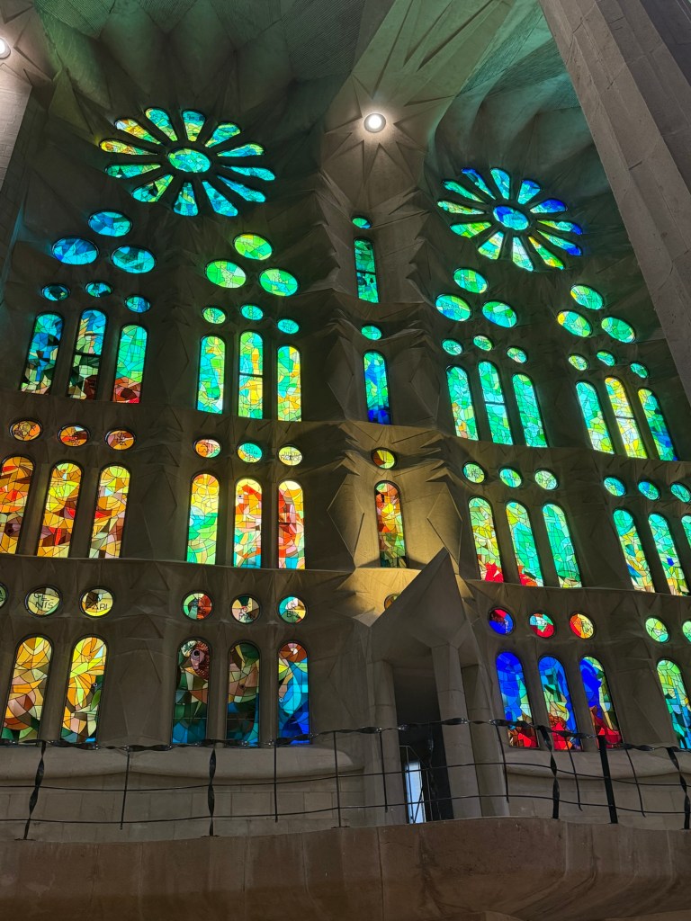 Our tour guide explained that for years, you couldn’t even go inside—the Sagrada Família was basically just a stone shell. It wasn’t until more recently that the interior was finished enough to welcome visitors. Hard to believe when you see it now.