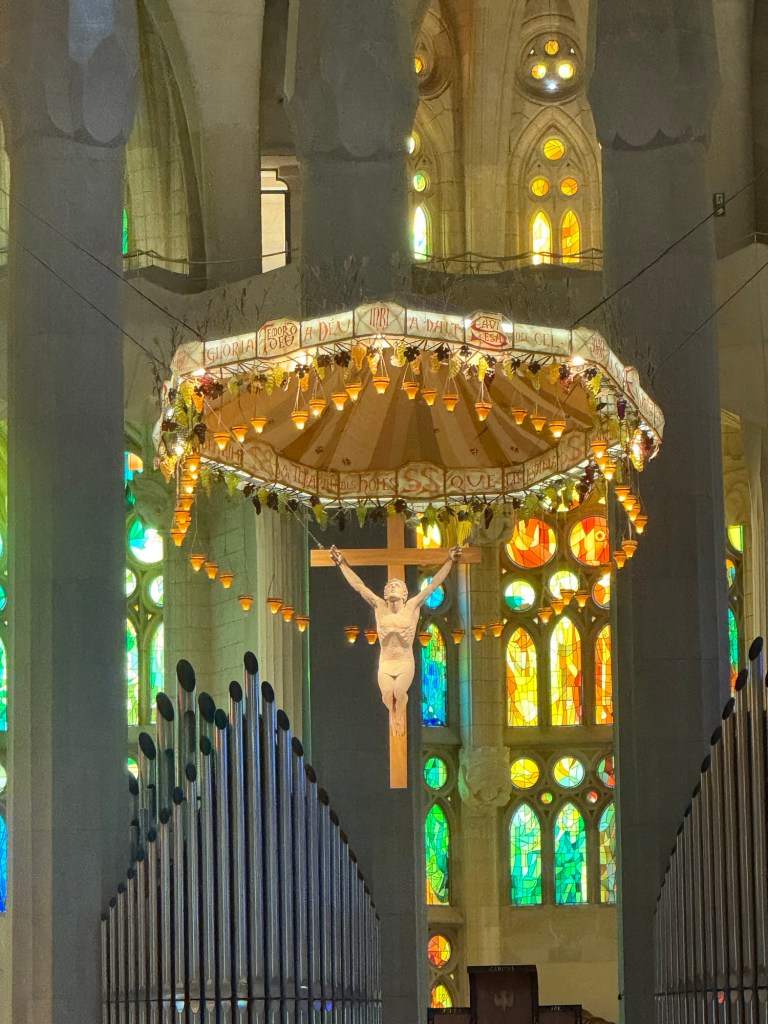 Ironically, the stone on the Nativity Façade was darker and almost spookier-looking at first glance—but the story it told was full of joy, celebrating the birth of Jesus with life, movement, and nature in every detail. Meanwhile, the Passion Façade, which we saw first when we popped out of the metro station, looked cleaner and brighter—but the message was heavy, focused on suffering and sacrifice. It was the opposite of what you’d expect, and it made the whole experience even more powerful.