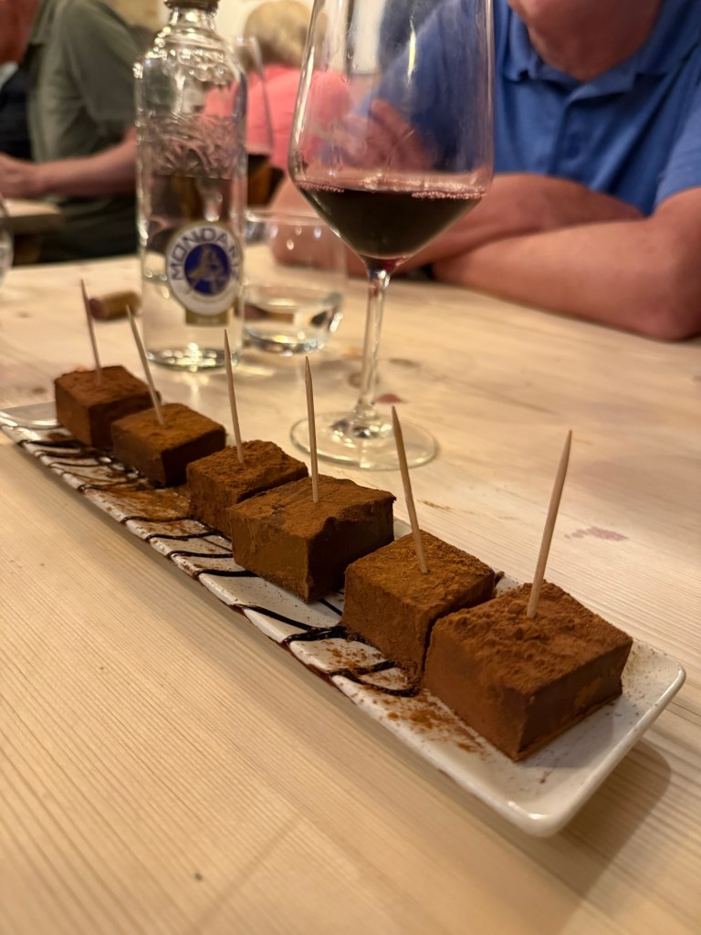 They brought these little creamy chocolate cubes at the end. Nobody could name them, but everyone ate them.
