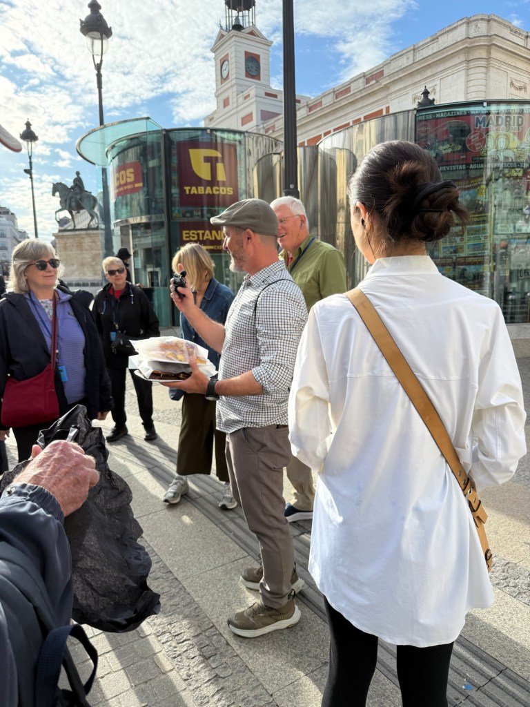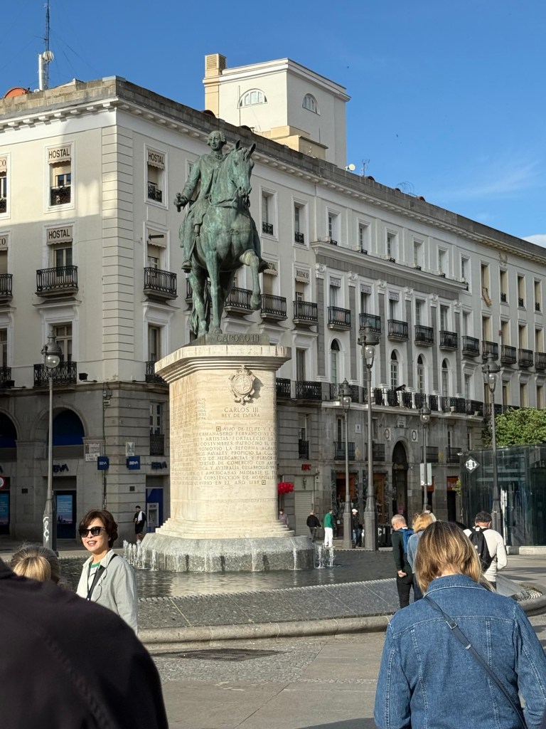 We started our day in Puerta del Sol, the center of Madrid. It was already buzzing with energy—tourists, street musicians, and the equestrian statue of Carlos III standing tall. This is where Spain’s six major roads begin, marked by Kilometer Zero right under our feet.
