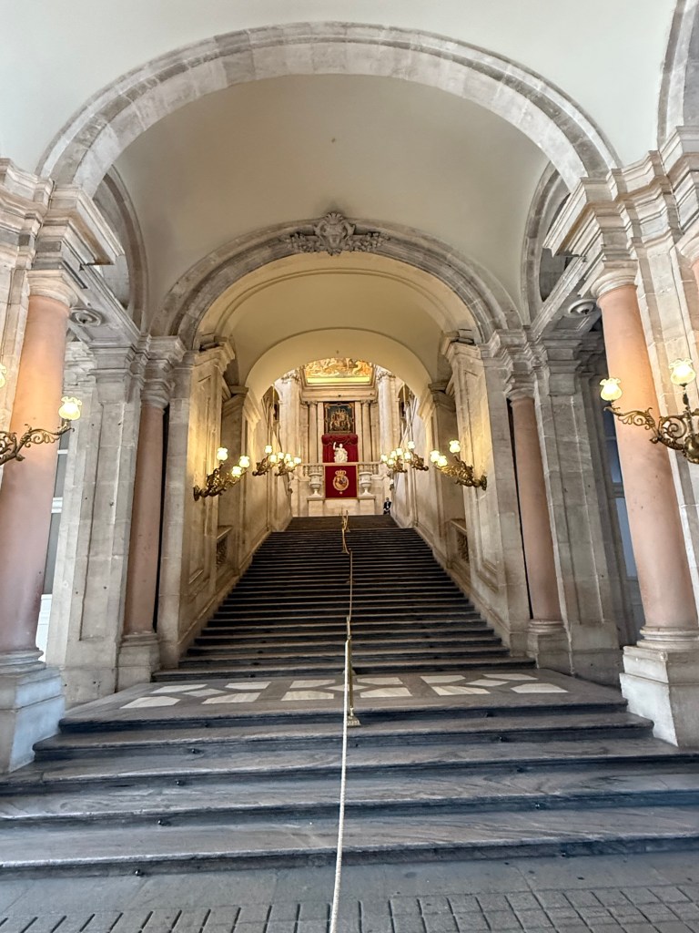As we climbed the grand staircase of the Royal Palace, our guide Blanca stopped beneath the towering portrait of King Philip V, looking up with a smile.