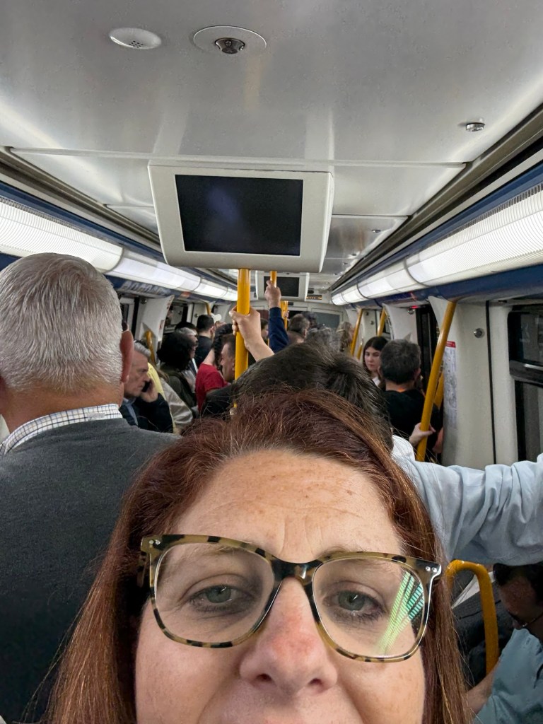 So that’s how we ended up boarding the Metro after a Segovia-style lunch of roast suckling pig, heading straight from one intense experience to another. We started our journey from near the Four Seasons Hotel, where the bus had dropped us off. The nearest Metro station was Sevilla, just a short walk away. From there, we boarded the train and navigated through the late-afternoon crowds, hoping it wouldn’t be as packed as Barcelona had been. No such luck—it was rush hour. Cheek to cheek with strangers, we held our breath (literally and figuratively) and rode all the way to Las Ventas, the stop for Madrid’s famous bullring.