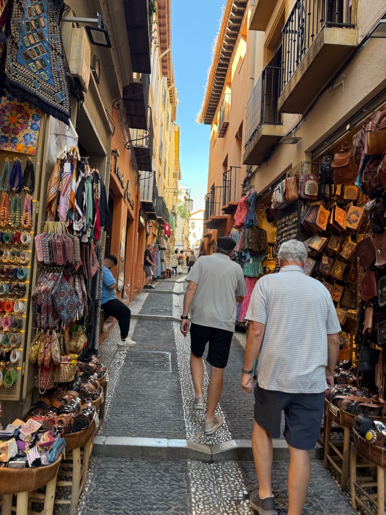 Our walk to dinner took us through Granada’s Moroccan quarter, then up a long stretch of stairs that seemed to rise with every turn. The climb was worth it — with each step, the tiles beneath our feet changed, from smooth stone mosaics to colorful ceramic patterns. It felt like a hidden trail leading us somewhere special.