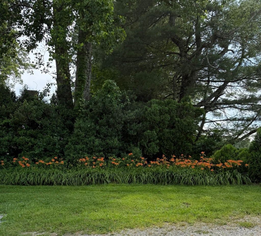 Just beyond it, a long stretch of blooming tiger lilies caught our eye. They were Glenn’s sister’s favorite flower, and we kept seeing them throughout the trip—her gentle “God wink” showing up again and again, reminding us she was along for the ride too.