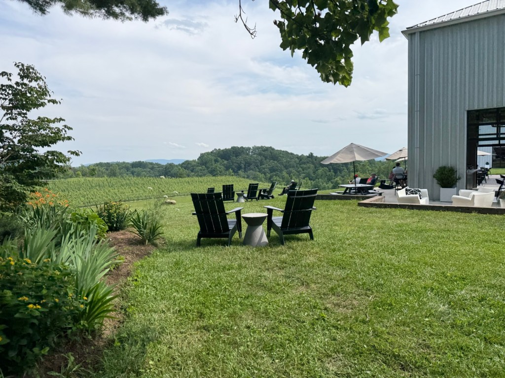We settled into a tasting at an outdoor table surrounded by vineyard views, Blue Ridge breezes, and Adirondack chairs lining the edge of the hill. We all ordered the Red Flight.
