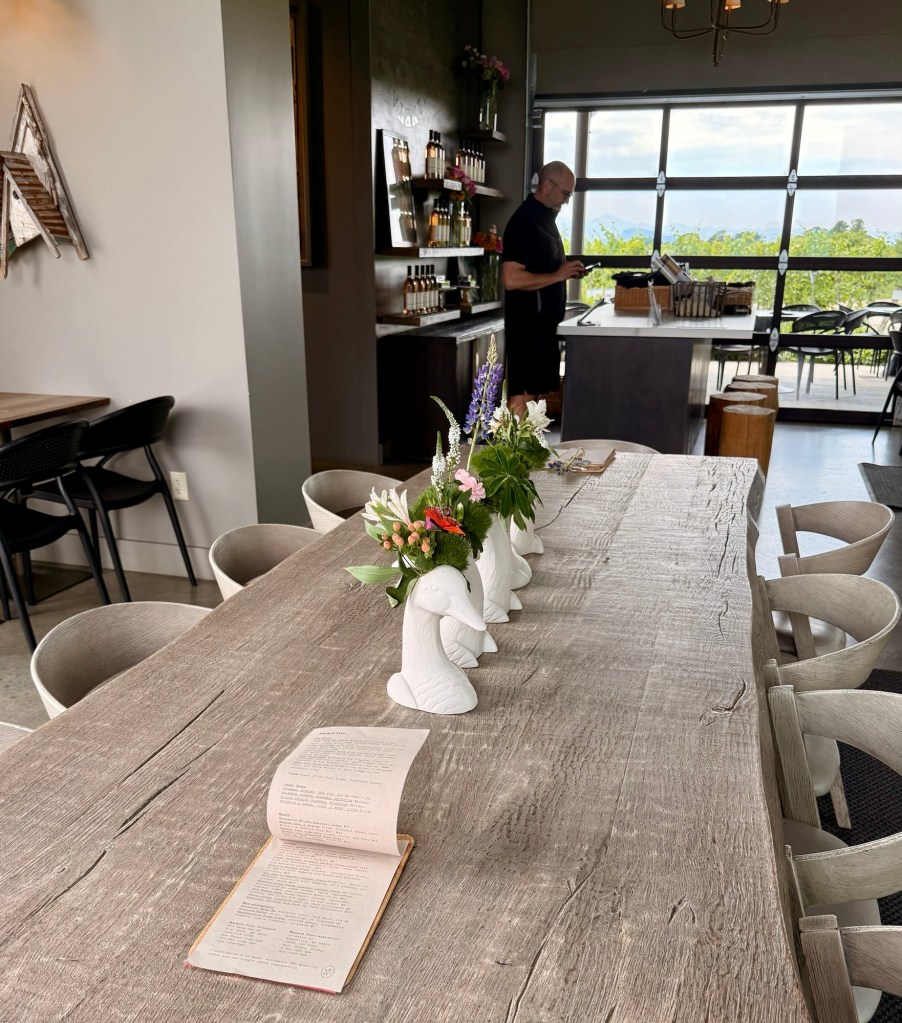 They planned another group trip this year, but the dates didn’t work for us. So we planned a smaller getaway—just the four of us—to explore the North Carolina mountains. We kicked things off with a dinner planning session and booked our hotel that night. A few weeks later, we met again—this time with maps and laptops—to dive into winery research. I offered some restaurant suggestions, and Tracie brought a list of vineyard options that focused on dry reds and whites—steering us far away from anything sweet or muscadine. Before we left, she’d even mapped out the route: start with the winery farthest out and work our way back toward Flat Rock each day. If timing worked out, we could even sneak in one the afternoon we arrived.
