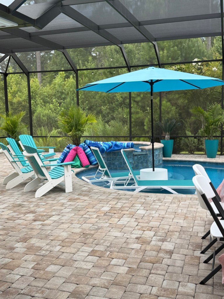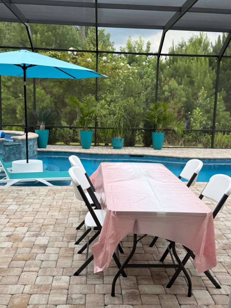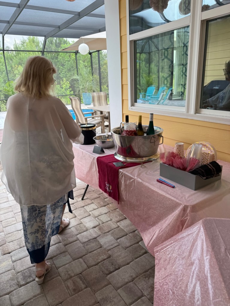 I was supposed to be there at 1:00 but rolled in a little late—and jumped right into party prep with Bob. The two of us fussed over every last detail, determined to make Barb’s birthday celebration a success. Bob wanted everything outside and said “it’s a pool party”. We ran down our checklist, rearranged, adjusted, and by 2:45, we were done. Proud of ourselves and ready to go.