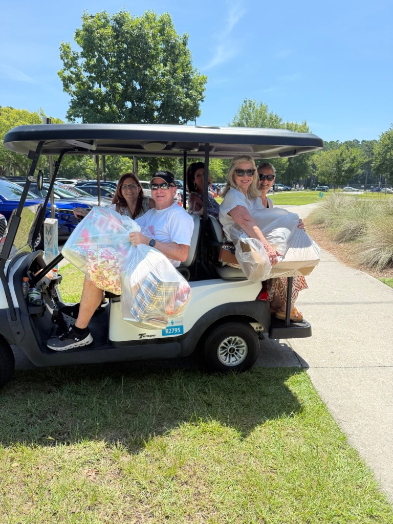 We headed to the Spartina Warehouse Sale—this year held at Bluffton High School. When we pulled up, the line outside looked totally reasonable. We thought this was the line… until we stepped inside and realized—nope. That was just the warm-up. Once they scanned our ticket, we found ourselves in a weaving, winding maze of hallways that felt more like a theme park queue. Around every corner, another stretch of line.