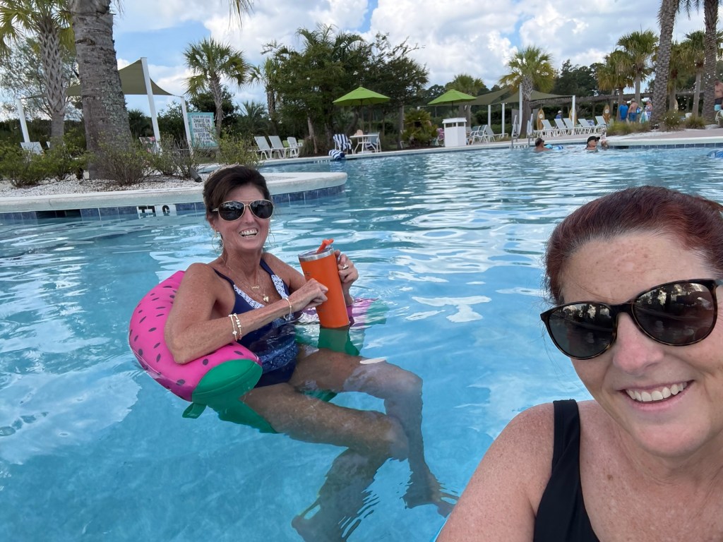 Next up: LETTRS. I snagged a pair of shoes and a really cute raincoat, then we headed home for some well-earned floating in the Paradise Pool.