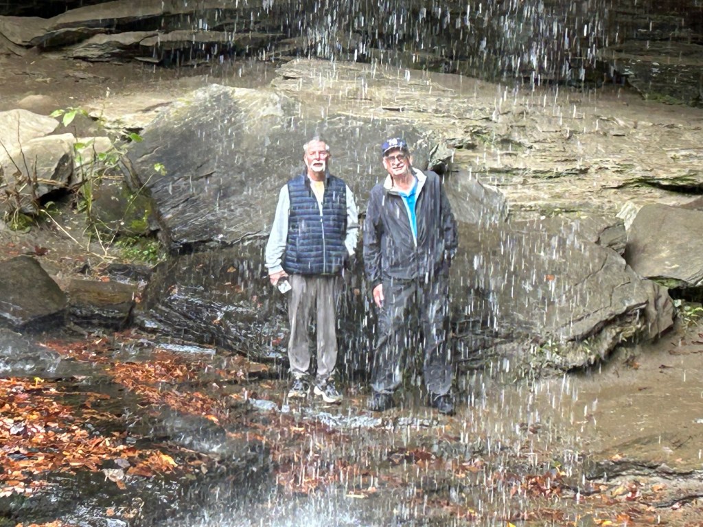Meanwhile, the guys continued on to Moore Cove Falls, a short, scenic trail that ends at a waterfall you can actually walk behind — always a crowd-pleaser. From there, they visited the Cradle of Forestry, a historic site within Pisgah that honors George Vanderbilt’s role in American forestry and Dr. Carl Schenck’s establishment of the first forestry school in the United States. The exhibits and trails tell the story of how sustainable forestry began right here in the Blue Ridge Mountains.