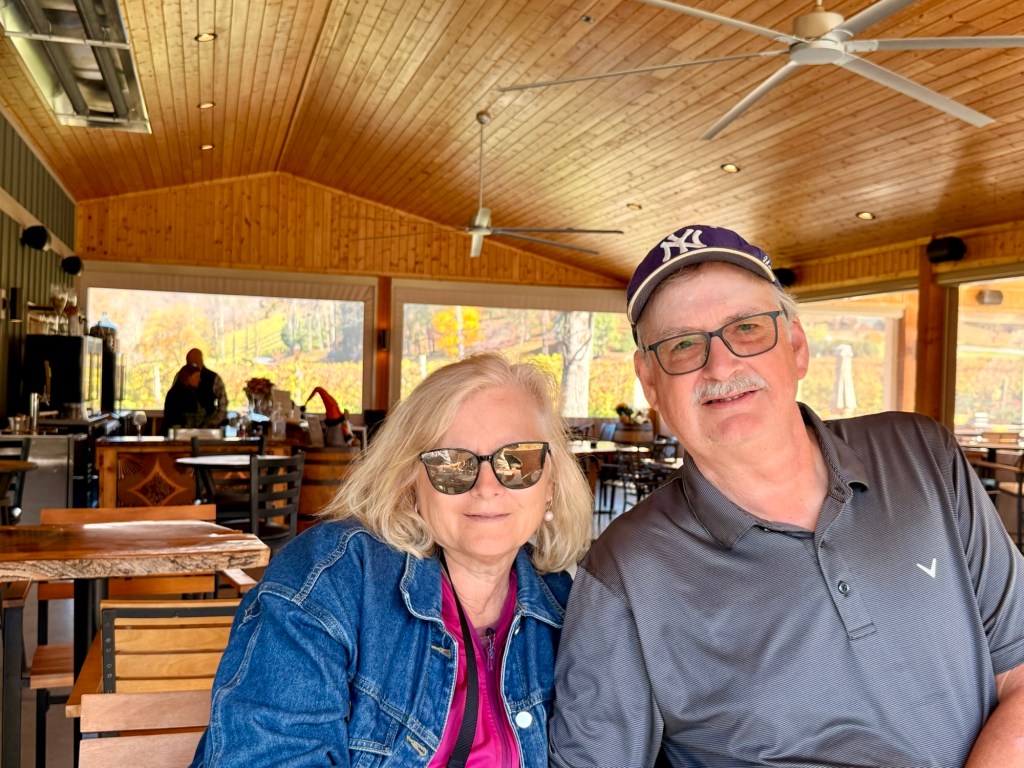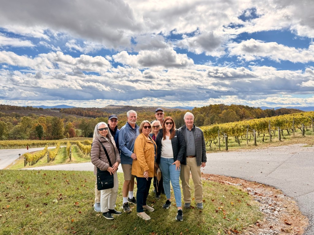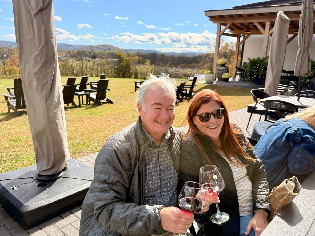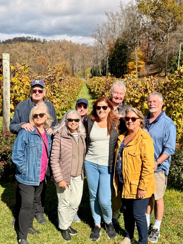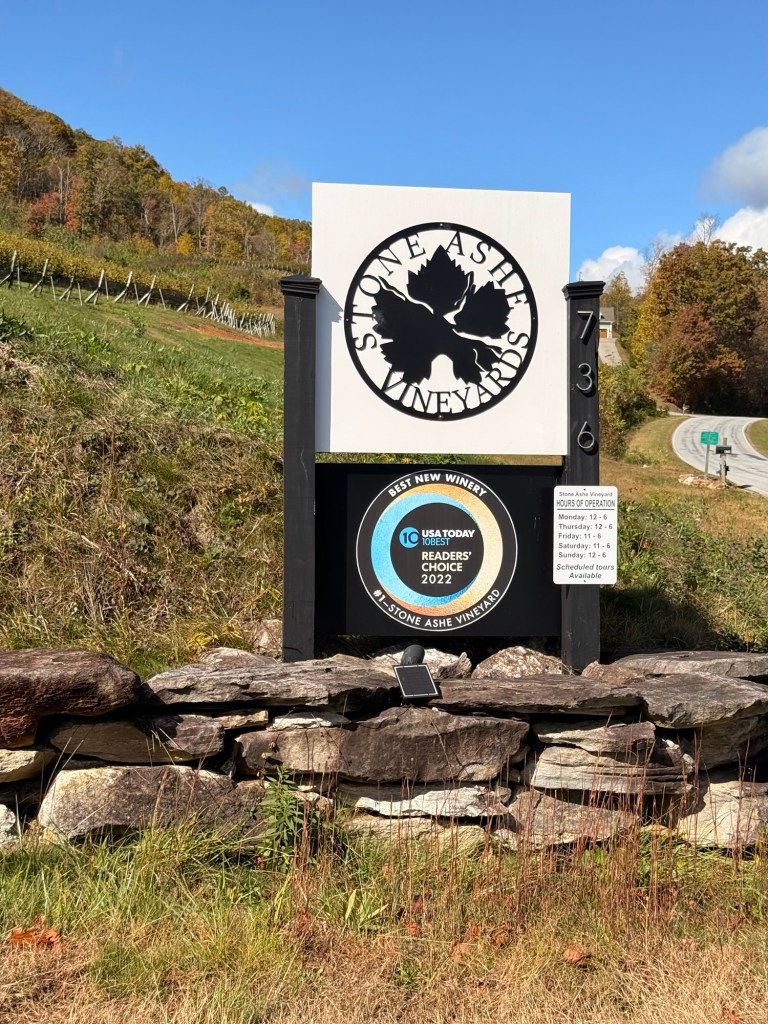 Next up was Stone Ashe Vineyard, one of the newer estates but already making a name for itself. The owners, Craig and Tina Little, planted their first vines in 2018 on what had once been a family apple orchard. The name “Stone Ashe” honors the surrounding mountains and the ashy soil that gives their wines a distinct mineral character. We sat outside, savoring the view across the vines and the Blue Ridge peaks. The wines were crisp and beautifully balanced, and the service was excellent. I ended up buying two bottles—one of their white Merlot, which completely blew me away, Coppedge and some local chocolate to give as gifts and a hat for Tim.