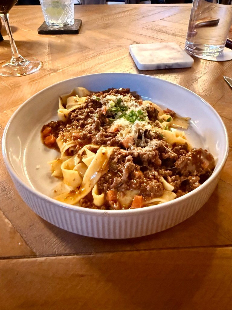 Dinner turned out to be a highlight at Claywood, a farm-to-table restaurant in the heart of Hendersonville. Set in a renovated 1940s building, Claywood blends rustic warmth with modern Southern style. The restaurant sources nearly everything locally—meats from regional farms, seasonal produce, and house-made pasta. Many of us ordered the Bolognese, and not one person was disappointed. The food was incredible, the service friendly, and the atmosphere relaxed—exactly what we needed to end the day.