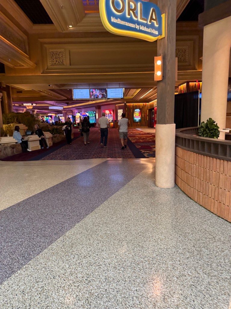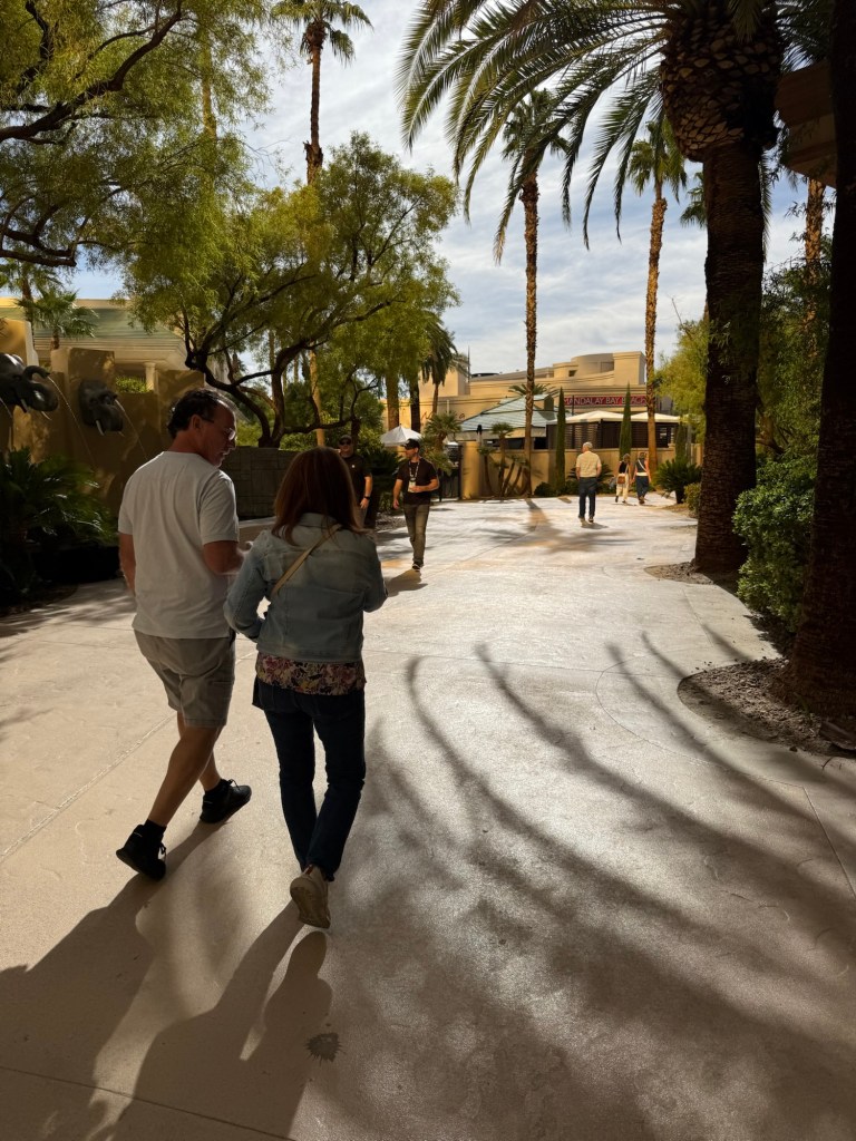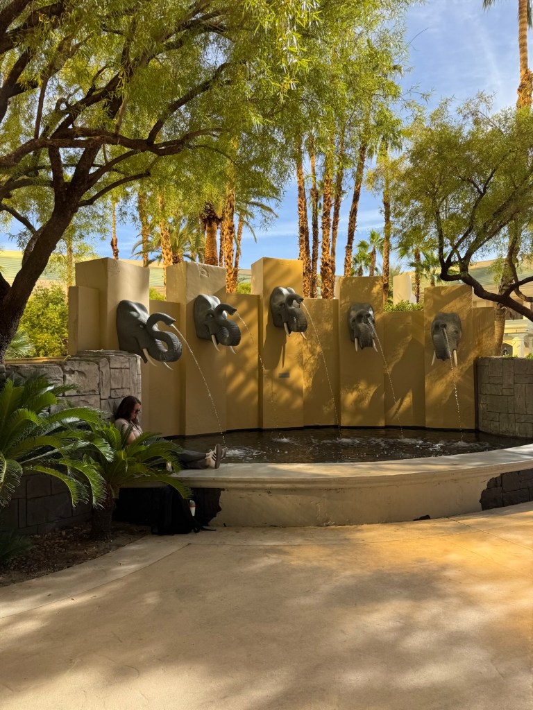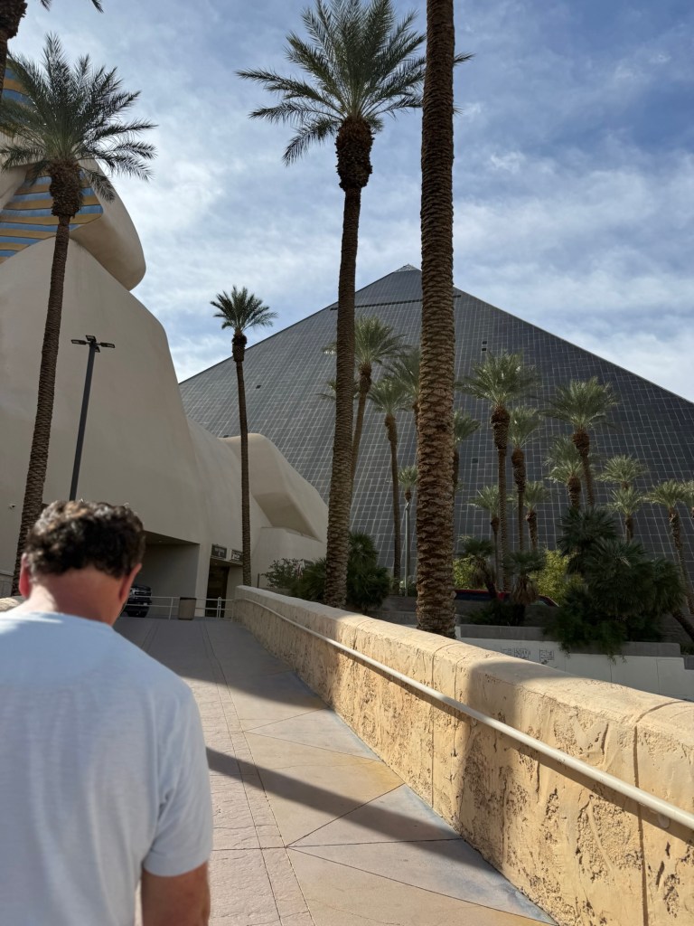 Next, we headed to Mandalay Bay to see “the Beach.” We tried to find it but never did, which was fine — it was warm outside, and we decided to just walk around in the daylight. There weren’t a lot of people around, but the buildings all stood out, almost as if they were saying hello to us. Vegas has a way of feeling alive even when it’s quiet.