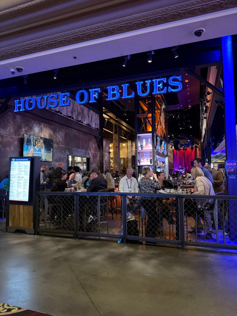 Dinner at the House of Blues was memorable — the food was so spicy that I begged for more water! Tim just sat there calmly, saying, “This is great,” while I was practically dying. The spice level was no joke.