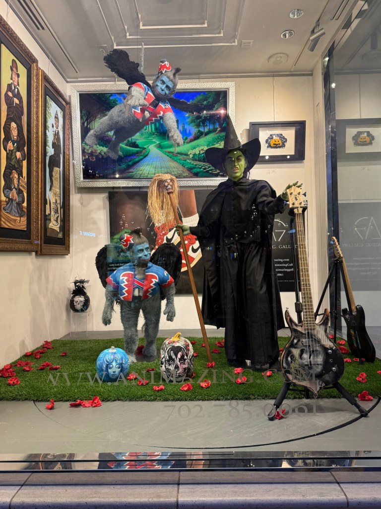 We wandered through the huge shopping area, stumbled on a fun Wizard of Oz display, and found a boutique that had a familiar vibe. Turns out they have some of the same things we’d seen at Mandalay Bay the night before — the bonus was everything was 50 percent off. We picked up a few things and, by some miracle, ran into the guys right as we came down an escalator.