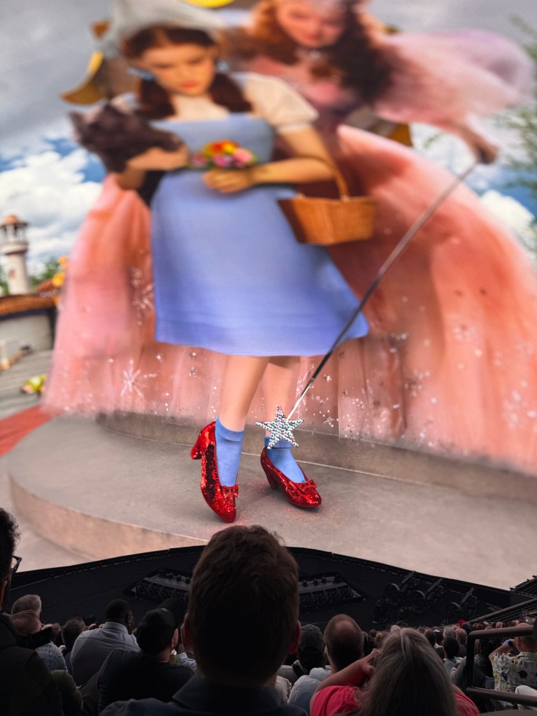 Each chair has built-in speakers and effects. When the Wicked Witch appeared, our seats shook; when the Wizard showed up, flames went off and you could feel the heat. At one point, it literally felt like we were inside a tornado. I was glad I’d pinned my hair down. It was one of the most impressive shows I’ve ever seen, and we even caught a few floating leaves to take home.