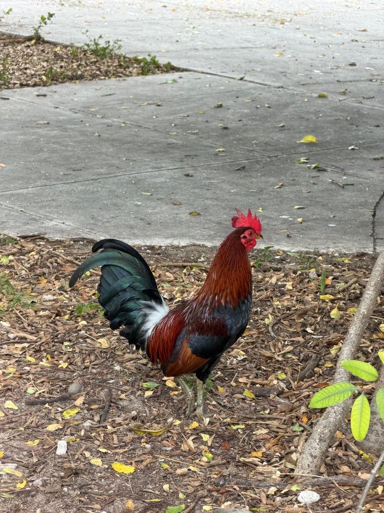 Almost immediately, we were also reminded that we were in Key West by the chickens and roosters—everywhere, loud, fearless, and completely protected. Originally brought over by early settlers for food, they’ve become part of the island’s personality, strutting through neighborhoods like they own the place.