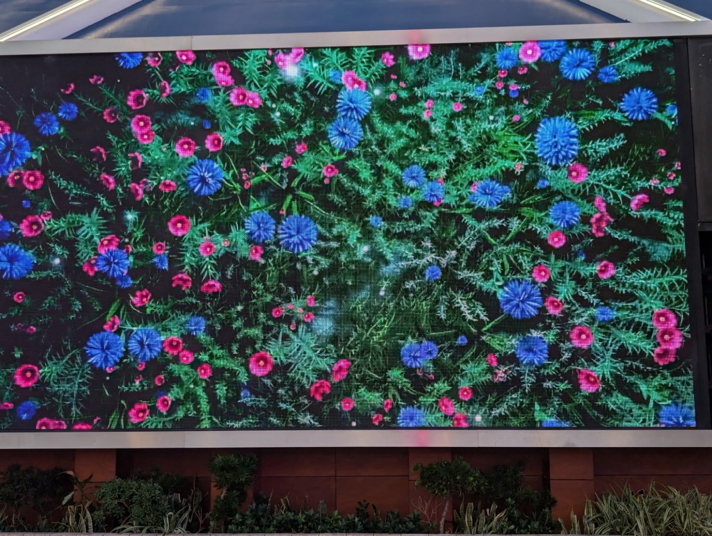 After dinner, the guys tried to catch the playoff game. The craft beer and sports bar area was tiny, so they headed up to The Rooftop Garden, where games had been shown earlier in the cruise. Not this one. Apparently, a movie was scheduled for 10:00, so by 8:00 the massive screen was already displaying a floral screensaver.