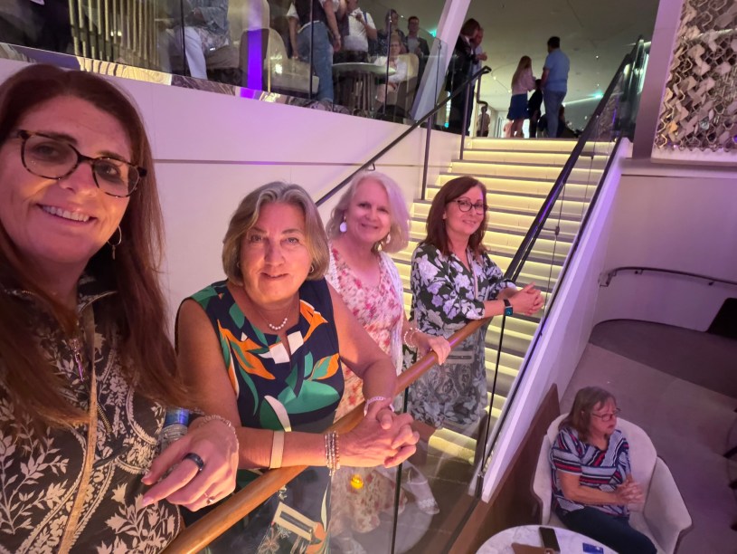 We ended the night at the club for the silent disco. Barb and I participated fully—headphones on, dancing like no one could hear us. Tracie and Debbie laughed from the sidelines, watching the chaos.
